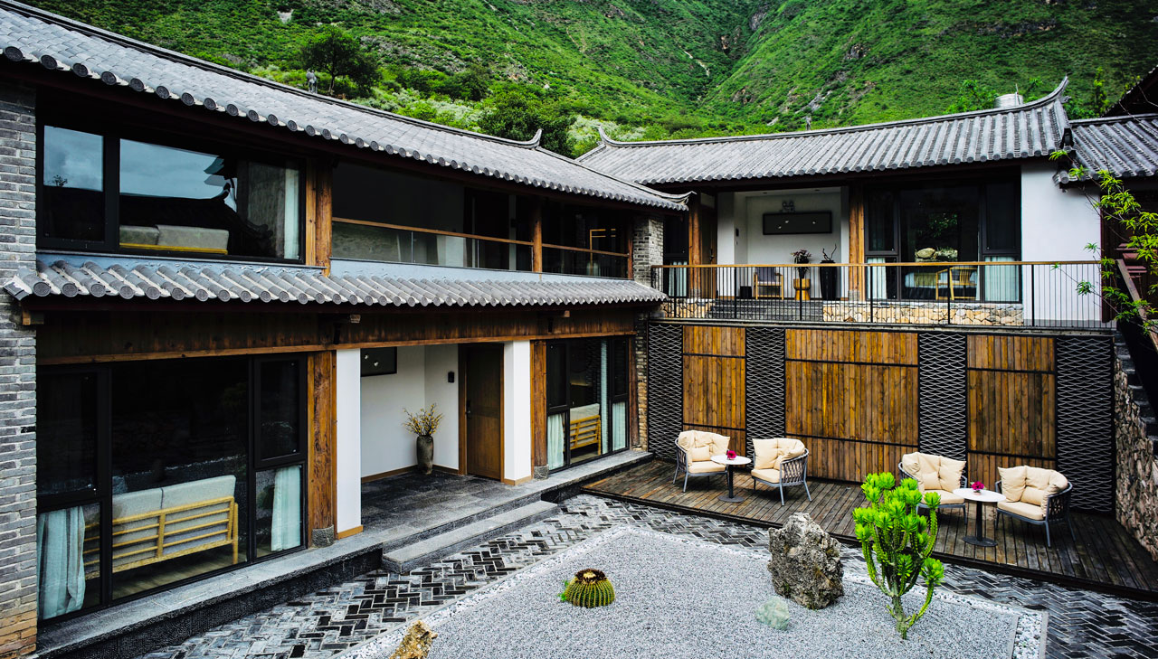 一个融合当地元素和现代设计的18间房豪华精品山居,坐落于传统的纳西族大具乡中心,周围群山围绕,瓜果飘香