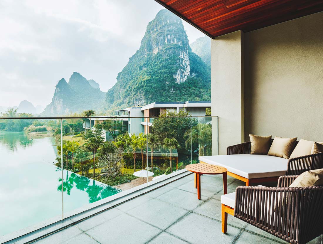 每间套房及别墅都体现着“慢旅”及河畔生活的艺术。一切始于喀斯特地貌独特的山、郁郁葱葱的绿林及蜿蜒的河流所组成的如画美景。宽阔的房间及智能家居,房间中多使用未经打磨的原始材料如木、原石及黄铜使得空间更加舒适,仿佛在套房或别墅中就已经近距离的浸入大自然的温暖舒适中。有如教科书般的逸世而居。