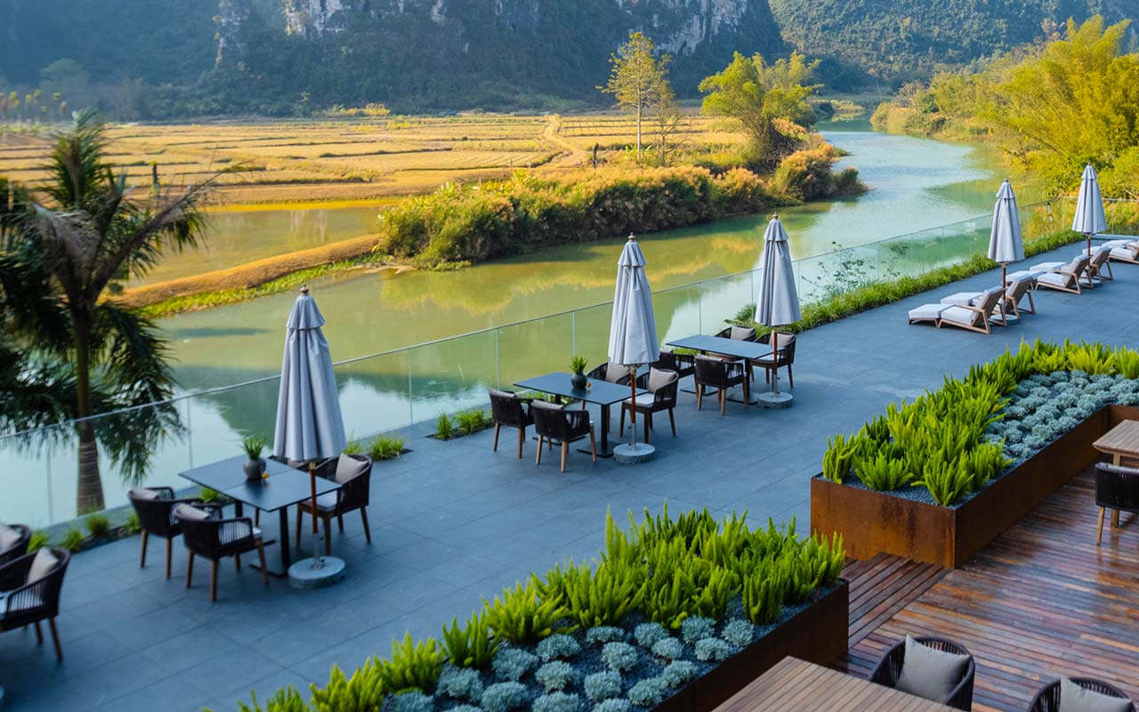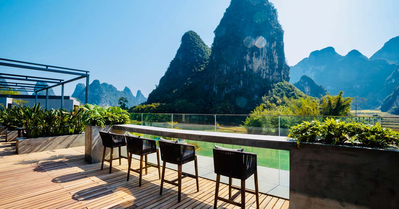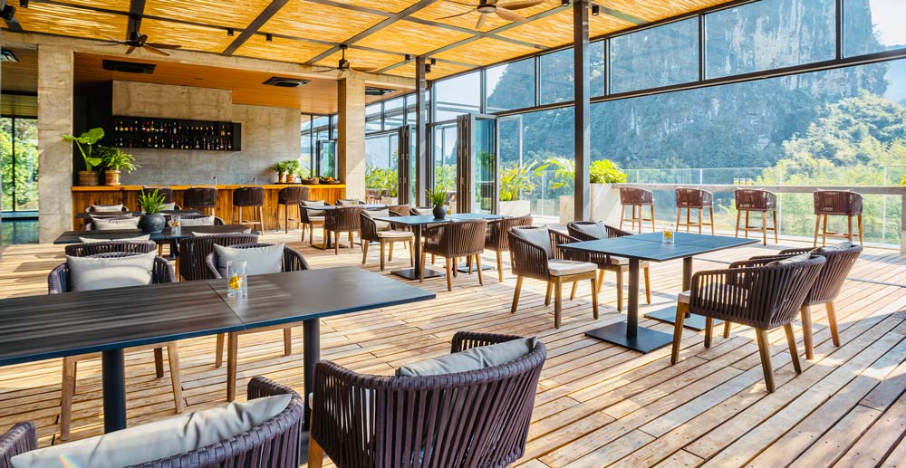 旅途当然关乎目的地,但美食更能加深体验。在路上,品尝新鲜的口味令人心驰神往。但同时,家乡的味道也不无温暖。在新鲜与温暖口味并蓄的度假村中, 还有更多的味蕾惊喜-在大堂的旁边,让时髦的咖啡屋开启悠闲的假期、在楼顶绿洲-时尚的星空吧中,眺望秀美独特的喀斯特地貌,精致温暖的云醉酒窖中隐藏着来自世界各地的葡萄佳酿、良食是度假村中的主要餐厅,提供丰富多样的中式、东南亚及西式风味美食,在目不暇接中挑选向往之味。