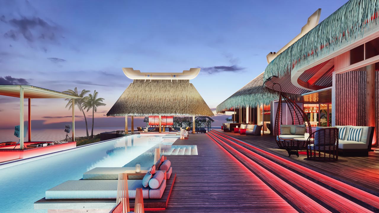 受马尔代夫标志性的水上度假村的启发,度假村的一部分建在海面上,包括水上别墅和整个LUX*M…