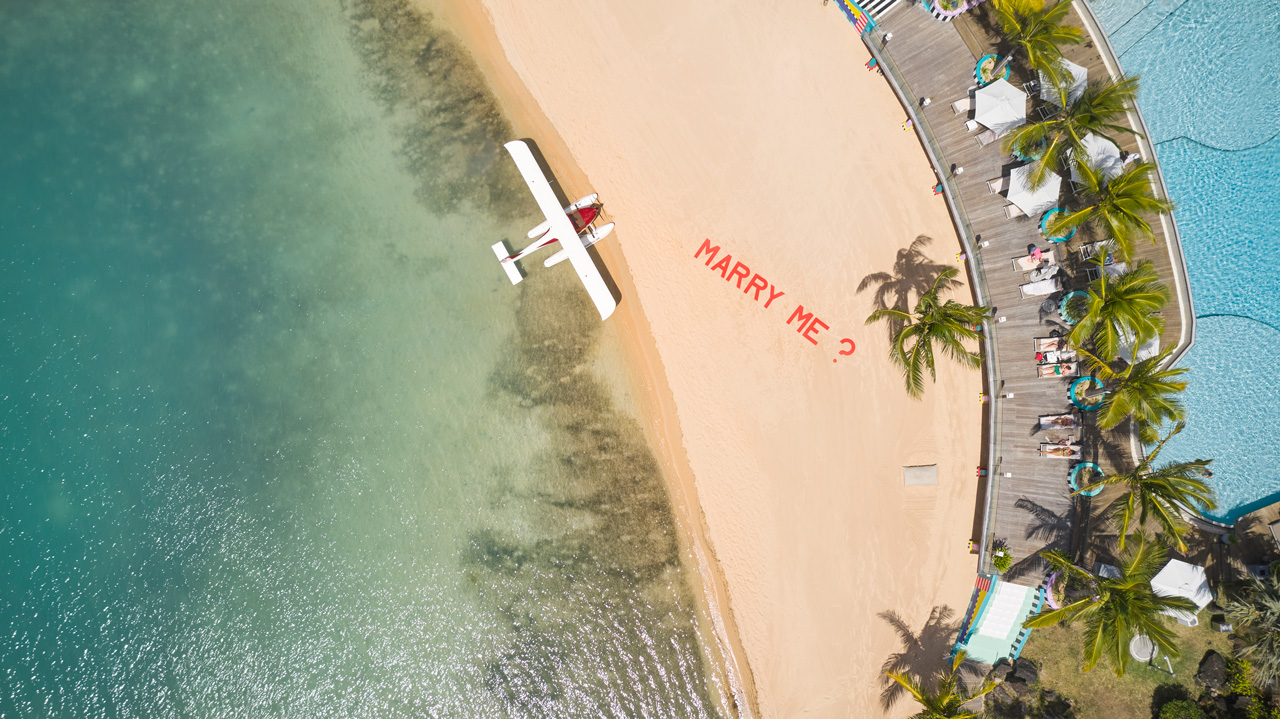 让我们来协助你制造一场浪漫的求婚惊喜吧!当搭乘水上飞机从空中俯瞰时,将能看到地面上壮观奢华…